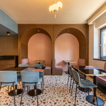 The AXY Hotel combines elegance and clean lines with a 1970s atmosphere and ethnic touches. The lobby, dominated by bronze and gold tones, is illuminated by LEDs that enhance the reflections, while a gold-colored canned wood cabinet defines the reception area. The breakfast area recalls the vintage style, revisited with furnishings modern. In the rooms, minimal design combines functionality and style, with furniture in brass lacquered wood and details in glass and iron for an experience of comfortable contemporary